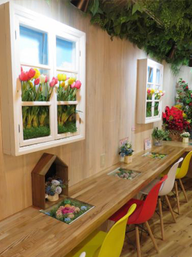 - 大きく飾られた壁面フラワーアートを楽しめます!