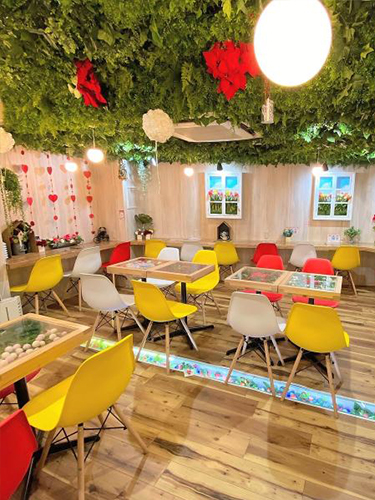 - 花に囲まれたカフェ