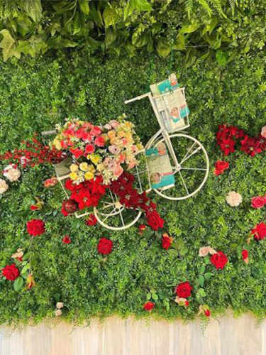 - 大きく飾られた壁面フラワーアートを楽しめます!